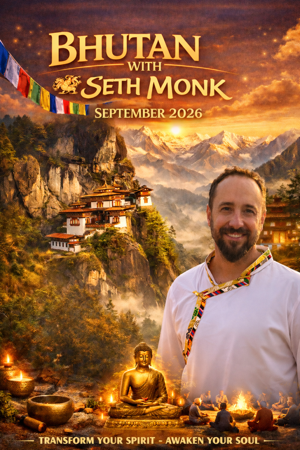 In 2026, join Seth Monk on a rare, immersive pilgrimage through the heart of the Himalayas, guided by ancient Buddhist wisdom, breathtaking landscapes, and Bhutan’s profound devotion to inner harmony and Gross National Happiness.