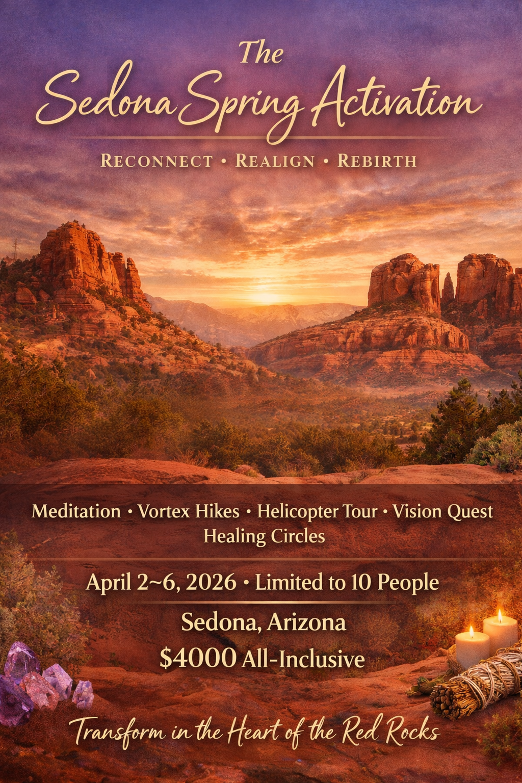 After the intensity of this past year, this spring is a new threshold. A moment where what has been dormant begins to rise, where clarity returns to the body before it reaches the mind. The Sedona Spring Activation is an intimate five-day journey designed to help you reset your nervous system, reconnect to your inner guidance, receive the support that has been waiting for you, and step forward aligned with what is next for your life.